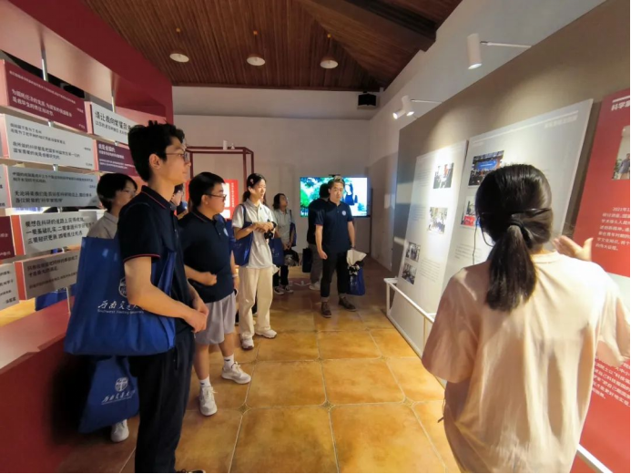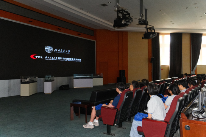 下午13:00 ,在樊小强教授和李雪老师的带领下,夏令营的同学们从九里校区乘坐校车到犀浦校区参观交流,大家先是来到了机车博物馆。在参观之前,樊小强教授从材料学专业角度向同学们介绍了交大磁悬浮列车的研究成果。随后,在讲解员的带领下,同学们走进机车博物馆内,了解了交大的发展历程以及多名杰出校友的光荣事迹,领略交大厚重的历史底蕴与独特的人文魅力。在参观完机车博物馆后,樊小强教授带着同学们欣赏沿途的风景,并介绍了教学区的建筑分布,材料实验室优势及地位。最后,同学们在犀湖河畔驻足留念并拍照合影。