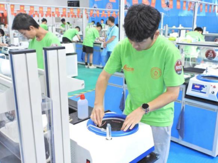 8月11日上午8:00至8月13日18:30大赛紧张有序地进行,参赛选手需要按照竞赛规则要求,在三天内分组完成两个抽取样品的制备,选手在30分钟内对样品的指定端面完成磨制、抛光、浸蚀、显微镜观察等流程,最终提交制备好的样品。评委老师按照选手操作规范、提交样品的宏观表面质量、提交样品的显微镜下质量等方面进行评分。鉴黄师