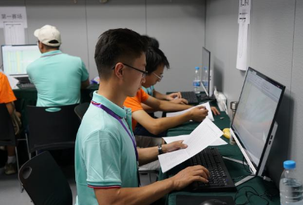 3位选手在老师的带领下完成了报到手续及第一轮复赛的场地适应训练。