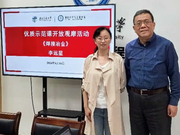 为发挥优师优课的示范引领作用,为教师搭建教学观摩研讨平台,提升教师教书育人能力和水平,学校教务处将于2024年开展优质示范课开放观摩活动。学院为更好准备好优质示范课参讲,4月16日特邀请吴锵教授与即将参与学校优质示范课讲授的李远星老师(《焊接冶金》主讲教师)和甯红波老师(《物理化学》主讲教师)针对同一教学节段共同授课并进一步讨论,完善课堂教学设计和课程思政融入方式,进一步提升课堂教学质量。