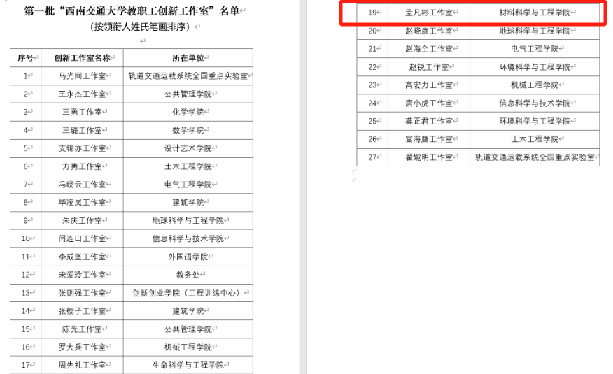 孟凡彬教授所率领的电磁功能材料工作室顺利进入首批名单。