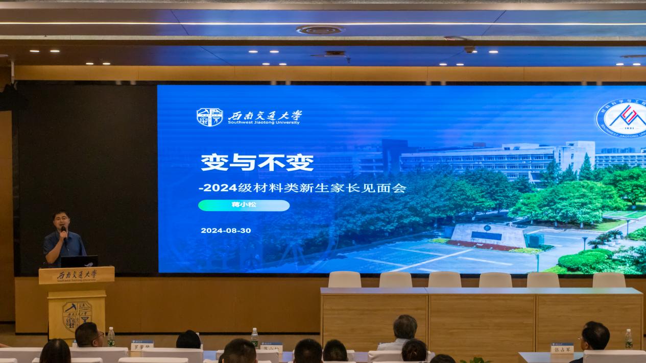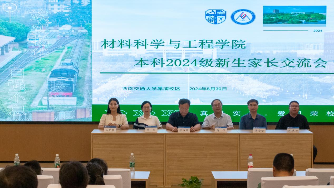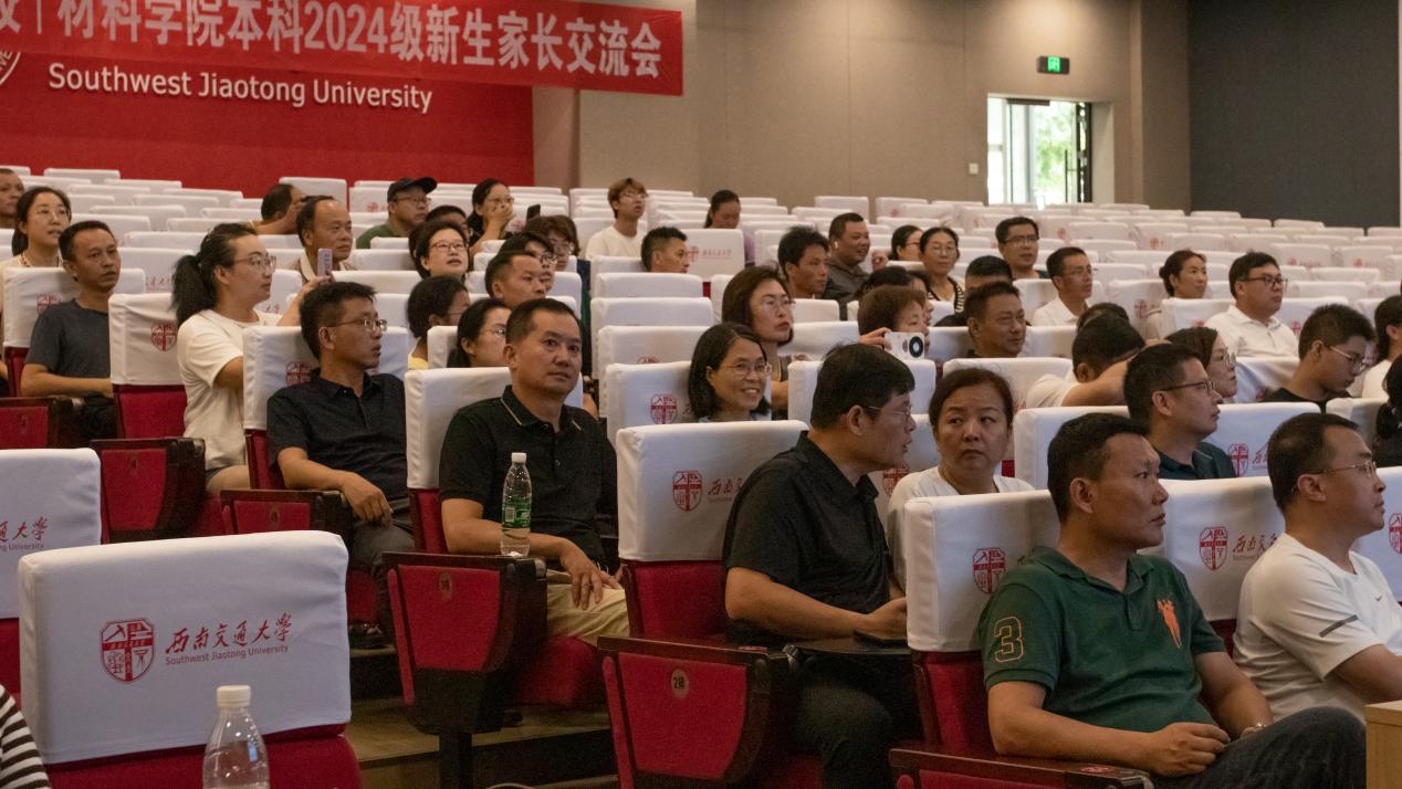 优秀学科成果及科技奖项,强调科教产深度融合促进成果转化,同时介绍了材料学科的支柱方向和新兴方向。他总结并分享到,家长要关注学生身心健康,孩子要在学校养成良好习惯,在西南交大得到满满的收获。
