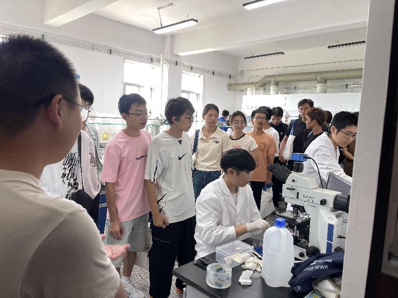 参过过程中,老师们向同学们介绍了实验室基本情况和特点、实验设备以及实验成果等,在这里,他们亲眼见证了各种先进设备如何精准地制备出不同性质的材料,新生们对材料科学有了初步的了解。同学们对实验内容产生了浓厚兴趣,纷纷停下脚步观察、拍照记录学习,纷纷提问,与老师和实验室工作人员进行了深入的交流。这种互动不仅解答了他们的疑惑,也激发了他们对材料科学的浓厚兴趣,深刻体会到了材料科学在工业生产中的重要作用。