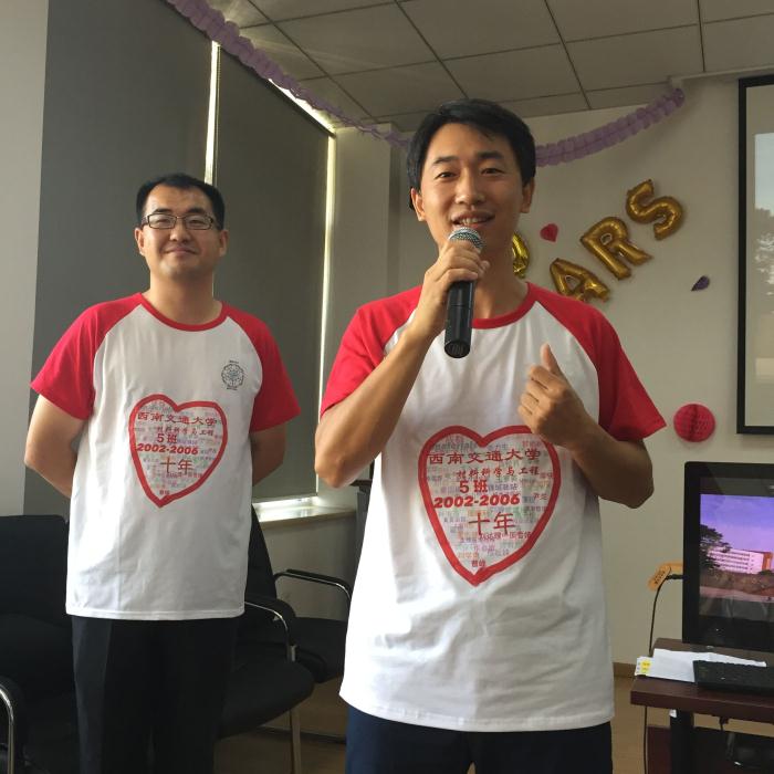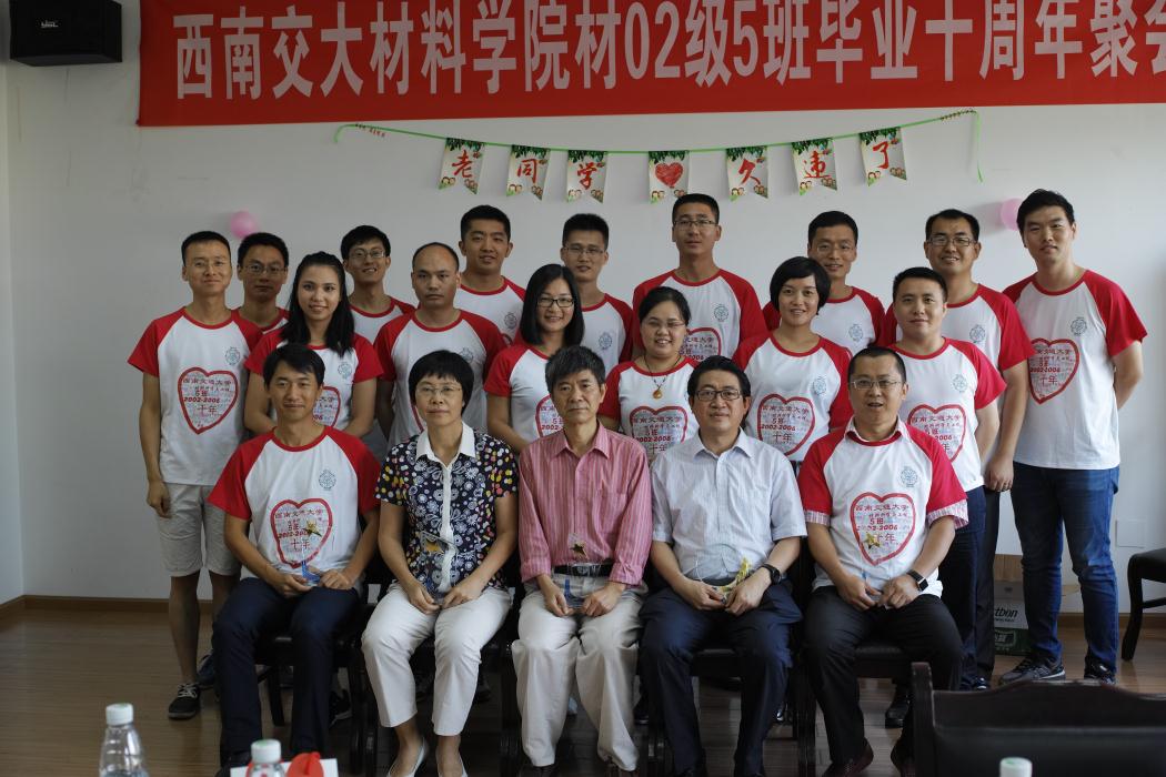 2006届材料科学与工程5班学生在九里校区2331会议室举行毕业十周年聚会。学院朱旻昊院长、陈兴莲书记、黄楠教授、冷永祥副院长(原2002-5班班主任)和后勤集团副书记高磊(原鉴黄师