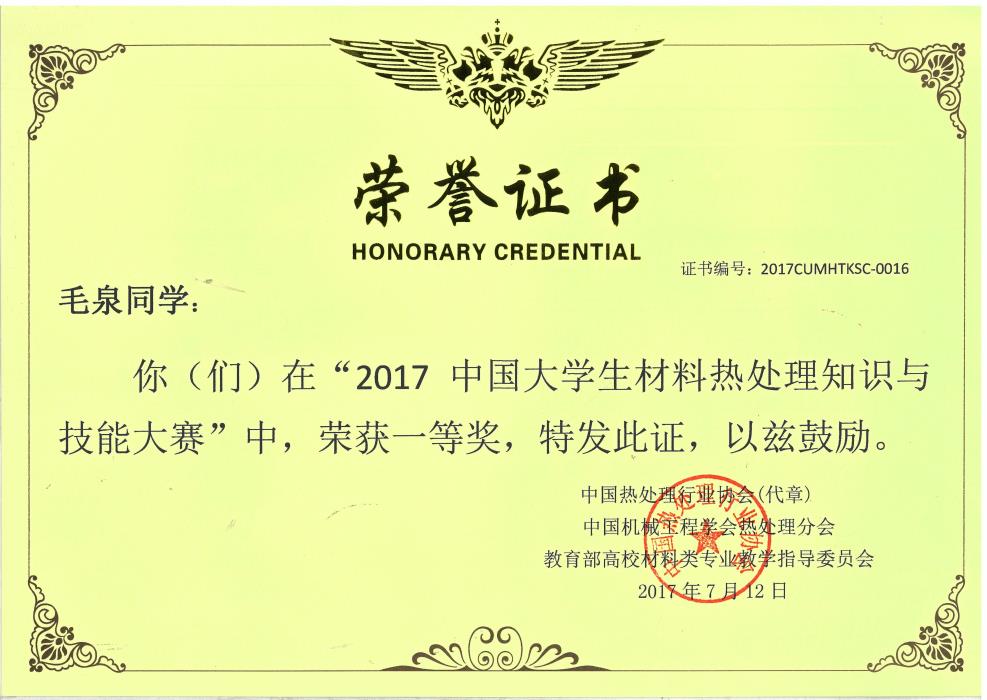 学子在2017年中国大学生材料热处理知识与技能大赛中取得优异成绩