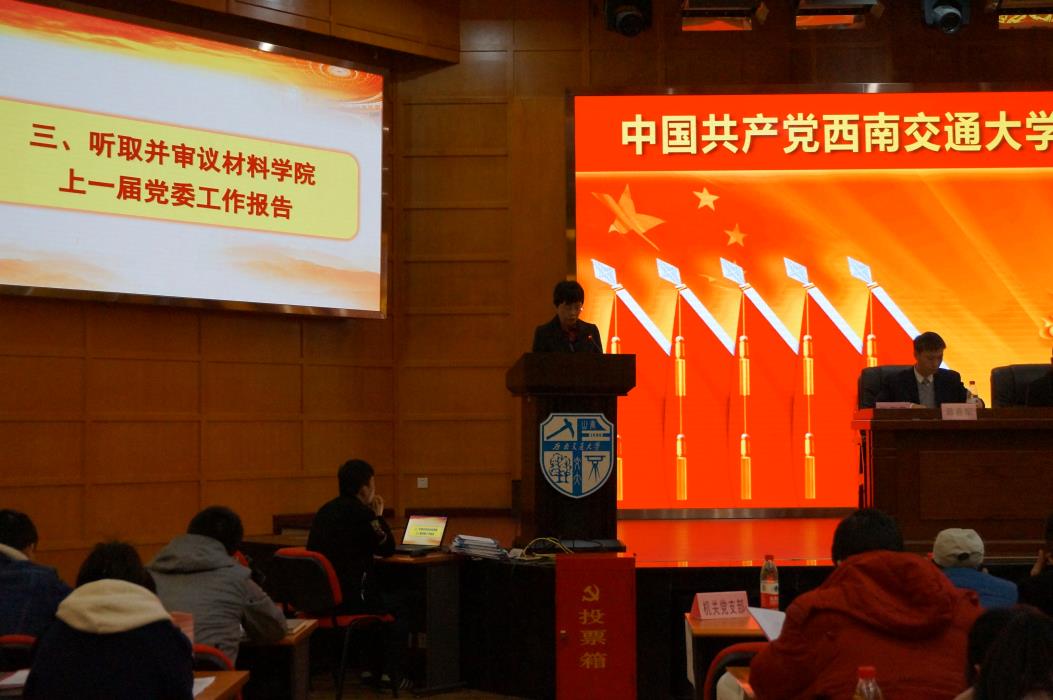 会议分为两个部分,第一部分是上一届党委的工作报告,第二部分是选举产生学院新一届两委(党委和纪委)委员。