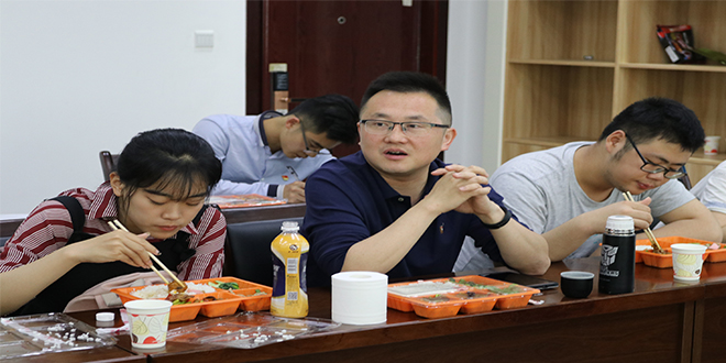 午餐间,老师和同学们边吃边聊,同学们纷纷就专业课程学习、考研升学、自控力等问题讲出了自己的困惑,两位老师则一一为同学们细心解惑。