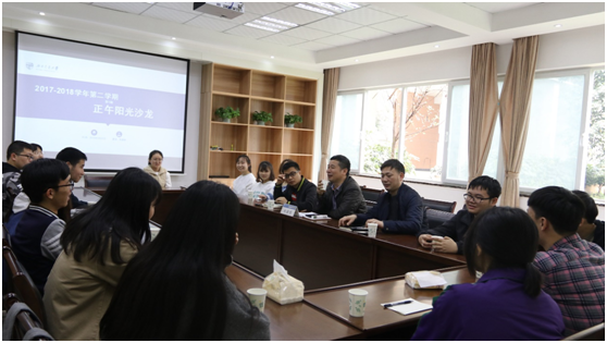 主管本科生教学的副院长、硕士生导师朱德贵副教授,与同学们畅聊升学、深造。学院党委副书记、纪委书记、学工组组长章春军,学工组副组长黄德明老师参加沙龙。