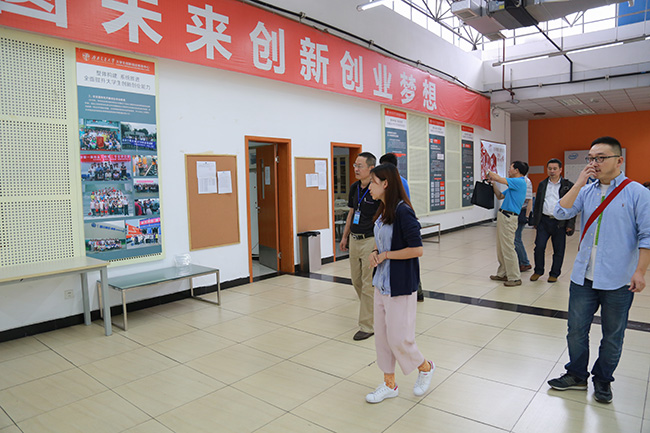 11点25分,在宣传大使的带领下,专家组成员共同参观了大学生创新创业中心。