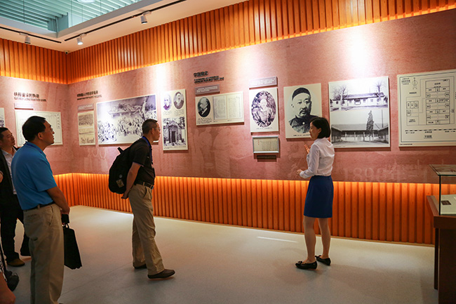 10点50分,专家组成员在校史馆大使的接待下开始参观校史馆。