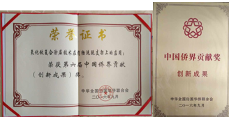 黄楠教授团队的研究成果“氧化钛复合涂层技术在药物洗脱支架上的应用”荣获了第六届“中国侨界贡献奖(创新成果)”。