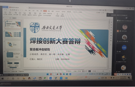 2022年6月10日晚7:00,焊接创新大赛决赛于线上准时开始,由加工系刘艳、马传平、陈大志、张曦四位老师组成评委团,采用国赛评价标准,对来自2019级和2020级成型专业学生组成的6支决赛队伍在“方案设计创新”、“结构件的承载能力及承载力质量比”、“完成的完整程度”、“结果正确与否”、“工程实用价值”、“答辩表现和团队协作”等方面进行提问和评分。各组选手竞争激烈、激情展示、精彩答辩,方案设计和实施中的自主探索呈现及创新能力得到了充分展示。此次竞赛评出了一等奖2组,二等奖2组和三等奖2组,其中获得一、二等奖的四只队伍将被推荐参加2022年全国焊接创新大赛。
