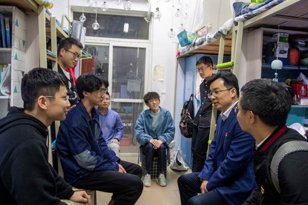 陈勇书记与同学们在宿舍进行座谈