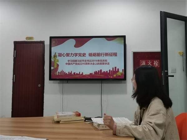 周丹彤同志首先介绍了今年适逢建党100周年,站在这个时间节点重温、回顾,具有深刻的意义。“不忘初心、继续前进”8个字是贯穿这篇讲话始终的一个主题。习近平总书记告诫全党,一切向前走,都不能忘记走过的路;走得再远、走到再光辉的未来,也不能忘记走过的过去,不能忘记为什么出发。习近平总书记对我们党95年奋斗历程的审视和阐述,具有强烈的启迪意义。是全党学习党史的最好“辅导资料”。紧接着周丹彤同志从以下三个方面进行了展开,一是党的光辉历程:从1921年建党以来,中国共产党作出了伟大历史贡献,使中国完成了伟大飞跃,具有重大的历史意义;二是历史启示:100年以来的历程告诫我们党的领导和先进理论指导的重要性不容置疑,告诉我们的事业、道路和战略经过历史的证明是正确的;三是迈向未来:我们应当坚持中国特色社会主义道路自信、理论自信、制度自信、文化自信,坚持党的基本路线不动摇,不断把中国特色社会主义伟大事业推向前进,坚信党的根基在人民、党的力量在人民,坚持一切为了人民、一切依靠人民,充分发挥广大人民群众积极性、主动性、创造性,不断把为人民造福事业推向前进。