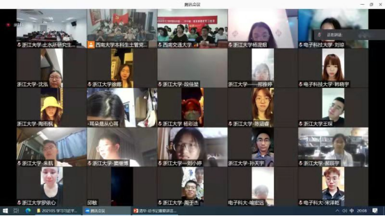 本科生第一(2019级)党支部主办,浙江大学环境与资源学院土水所研究生第一、二、三党支部,电子科技大学微电子与固体电子系研究生第一党支部,西南大学资源环境学院本科生土管党支部协办的《榜样青年说——高校学生党支部联动述党史故事》活动通过腾讯会议在云端举行。