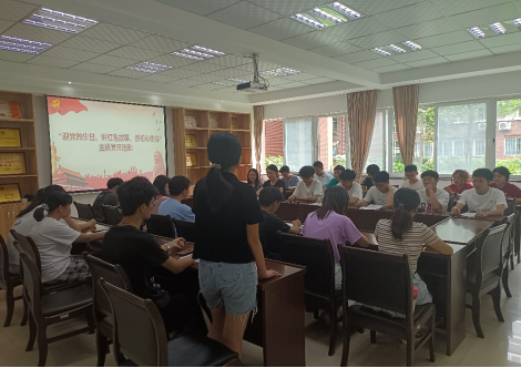 本科生第一(2019级)党支部在X2128举办“迎党的生日、讲红色故事、悟初心使命”主题党日活动,支部书记熊苏雅,党员邓文婷、董海霞同志,以及26名预备党员参与活动。