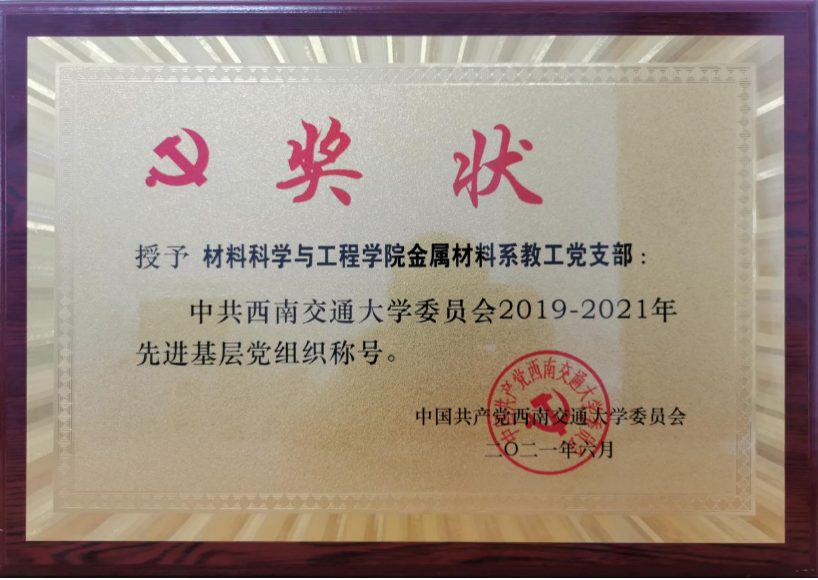 金属材料系教工党支部由35位党员同志组成(含两名博士生党员),拥有国家和省部级以上人才入选者7位,博士学位者31人,80后教职工达到28位,高级职称22人。在学校党委2019—2021年度“两优一先”评选中,金属材料系教工党支部获先进基层党组织荣誉称号。