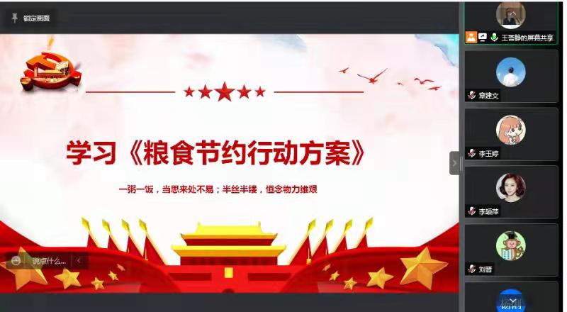 第十党支部召开以“践行初心,勇担使命”为主题的党日活动,第十党支部全体党员及入党积极分子参与了本次活动。本次会议由党支部书记王誉静主持,由各位支部成员分享了自己党史学习的成果,并由王誉静同志领学《粮食节约行动方案》精神。