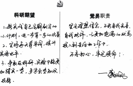 最后,由全体参会同志写下科研期望和党员职责。党建和科研都是贯彻党的教育方针、推进党的教育事业的任务,党建和科研是一体两面,同志们写的内容深刻体现出作为一名科研人员的科研梦与一名党员的初心与使命。