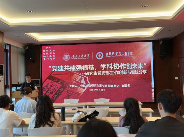 研究生第七党支部在党员培养、主题党日活动开展、学术科研与党建融合等方面的特色做法和成功经验;叶子群则分享了地学学院党支部在党建引领学科建设、服务地方发展、加强师生党员联动等方面的创新举措和实践成果。双方通过坦诚交流、相互学习,拓宽了党建工作思路,为今后支部工作的高质量发展提供了新的借鉴。