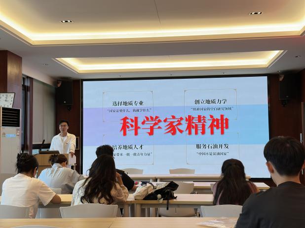 随后,地学学院红路宣讲团杨洋同志分享了宝贵的地质精神,讲述了地质工作者在野外勘探、科学研究中不畏艰难、勇于探索、甘于奉献的动人故事,展现了地质人以“三光荣”(以献身地质事业为荣、以艰苦奋斗为荣、以找矿立功为荣)为核心的精神品质。这些感人至深的事迹和崇高的精神,深深触动了在场党员,激励着大家在各自的专业领域中攻坚克难、砥砺前行。